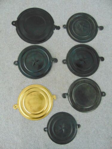7 OLD ANTIQUE MANTLE SHELF REPLACEMENT METAL SLIDING BACK DOOR LOT CLOCK PARTS