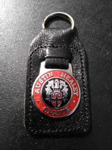 Title (ebay affiliate link): Vintage Austin Healey Sprite Car Logo Leather Keychain Made in England.
