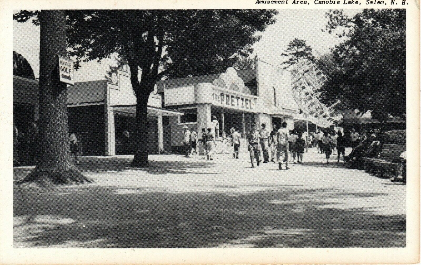 Title (ebay affiliate link): ~1950''s CANOBIE LAKE SALEM NH - "The Pretzel" in Amusement Park - B&W view