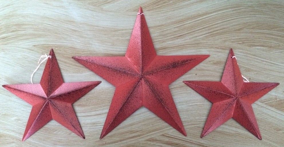 Title (ebay affiliate link): Set of 3/ BURGUNDY BLACK BARN STARS 12"/8" PRIMITIVE RUSTIC COUNTRY ANTIQUE