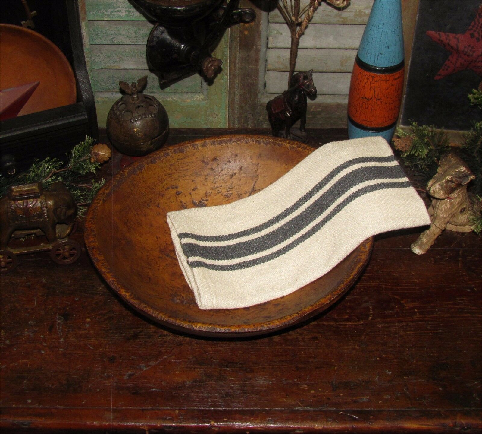 Title (ebay affiliate link): PRIMITIVE Antique Vtg Style FARMHOUSE Stripe COVERLET SHORT RUNNER RETIRED A15T