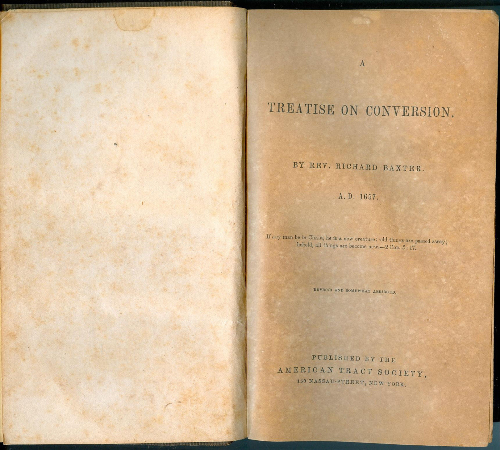 Title (ebay affiliate link): A Treatise on Conversion by Rev. Richard Baxter, American Tract Society, 1850