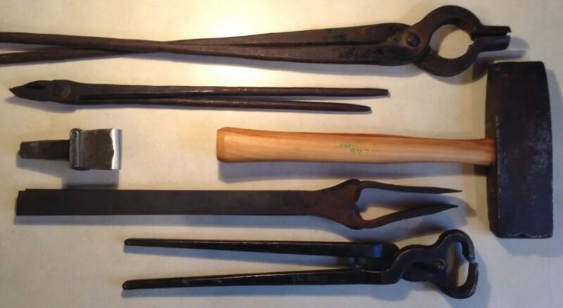 Title (ebay affiliate link): Vintage Blacksmith lot Tongs Hardy Nippers Hammer Ready to Work