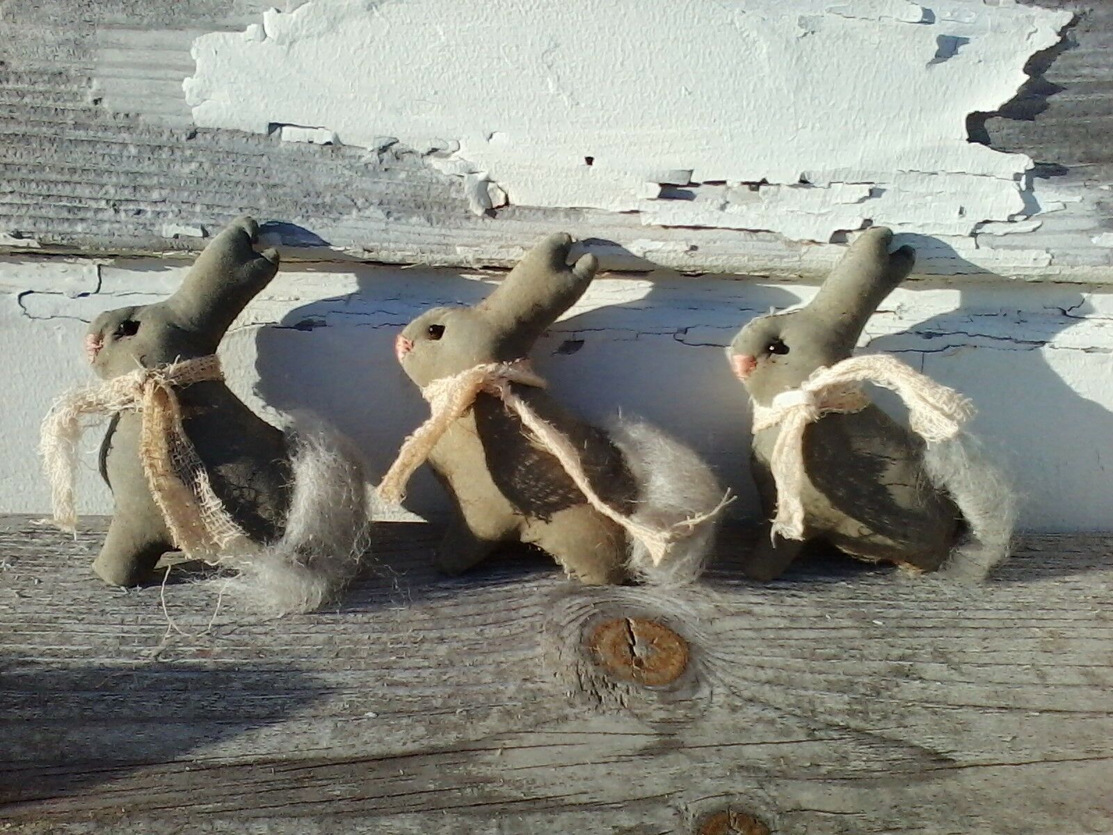 Primitive Grungy Gray Bunny Rabbit Ornies Bowl Fillers Decor Set Of 3