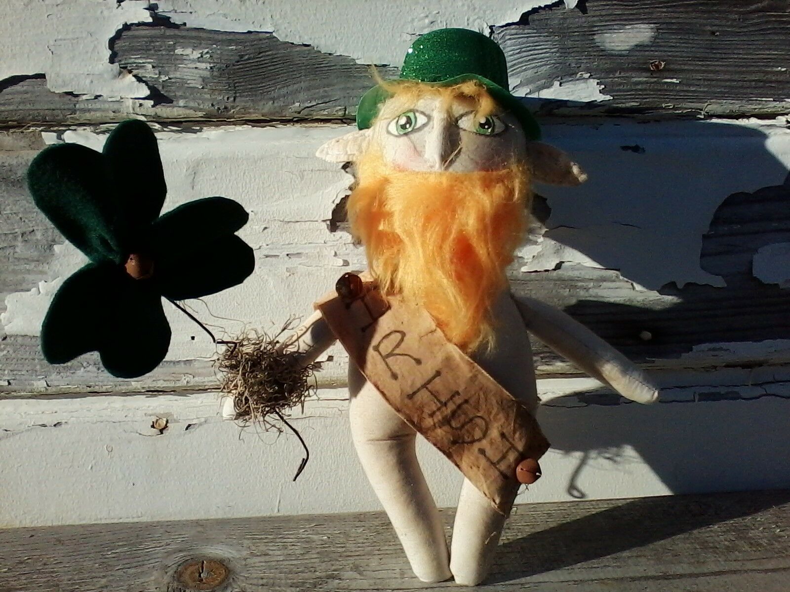 Primitive St. Patricks Day Leprechaun Doll Ornie Shelf Sitter Decor