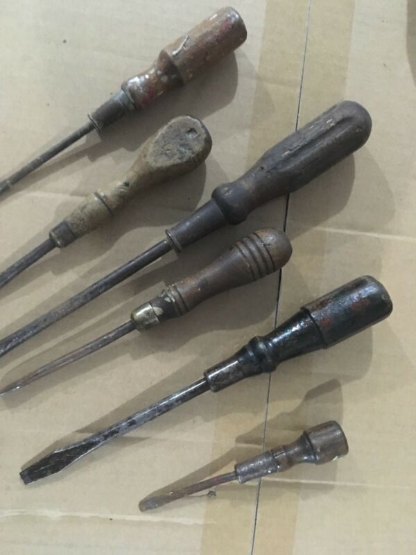 Title (ebay affiliate link): Antique Lot of 6 Vintage Wooden Handled Screwdrivers