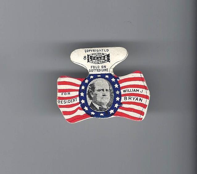 Title (ebay affiliate link): 1908 WILLIAM J. BRYAN r/w/b BOW-TIE DESIGN CAMPAIGN PAPER TAB