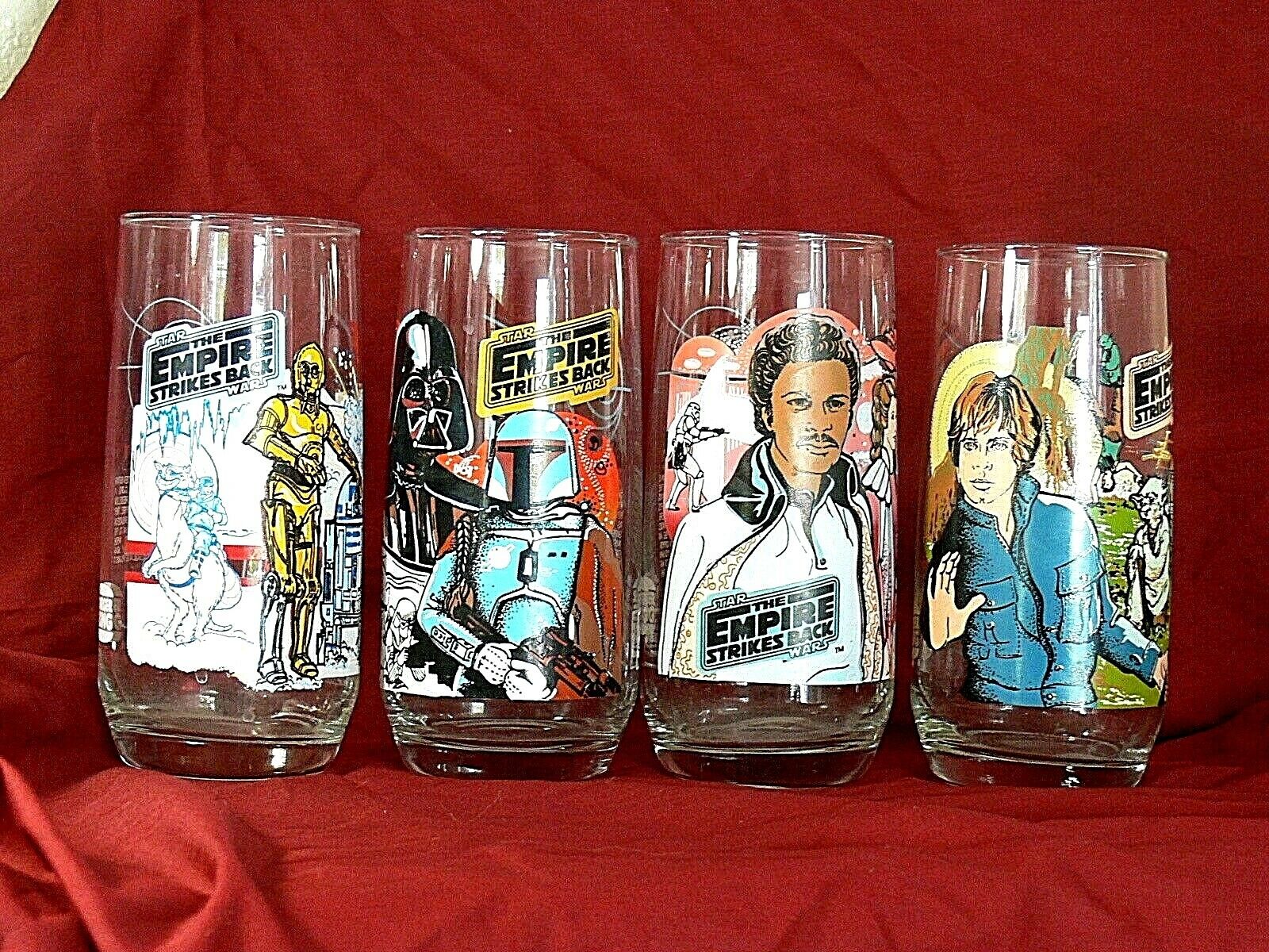 Title (ebay affiliate link): Star Wars The Empire Strikes Back Burger King Coca-Cola 1980 Set of 4 Glasses