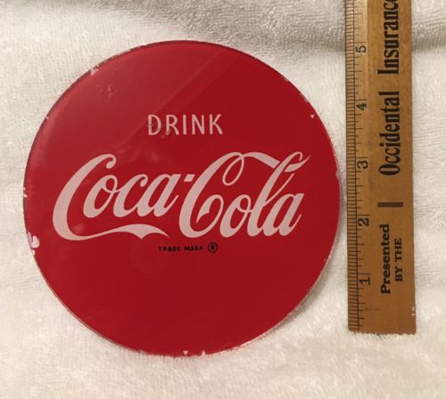 Title (ebay affiliate link): VINTAGE SMALL ROUND GLASS COCA-COLA ADVERTISING SIGN