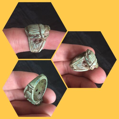 Title (ebay affiliate link): Rare ancient Egyptian blue faience scarab beetle ring , 300 bc .