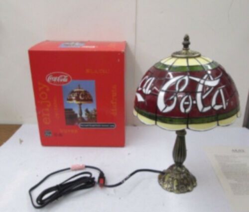 New Vintage Tiffany Style Stained Glass Coca Cola Coke Table Lamp Light 16" Tall