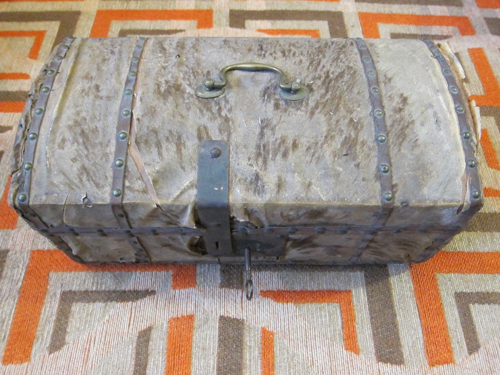 Title (ebay affiliate link): ANTIQUE DOME TOP HIDE COVERED DOCUMENT BOX CHEST TRUNK HANDLE LATCH W/ KEY NR!