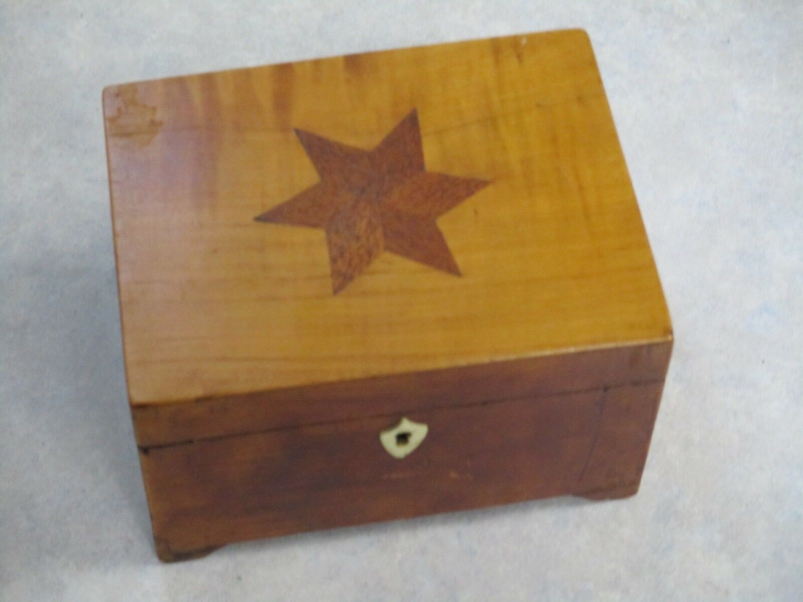 Title (ebay affiliate link): Small figured Cherry box with inlay, inlaid box federal shield and star dovetail