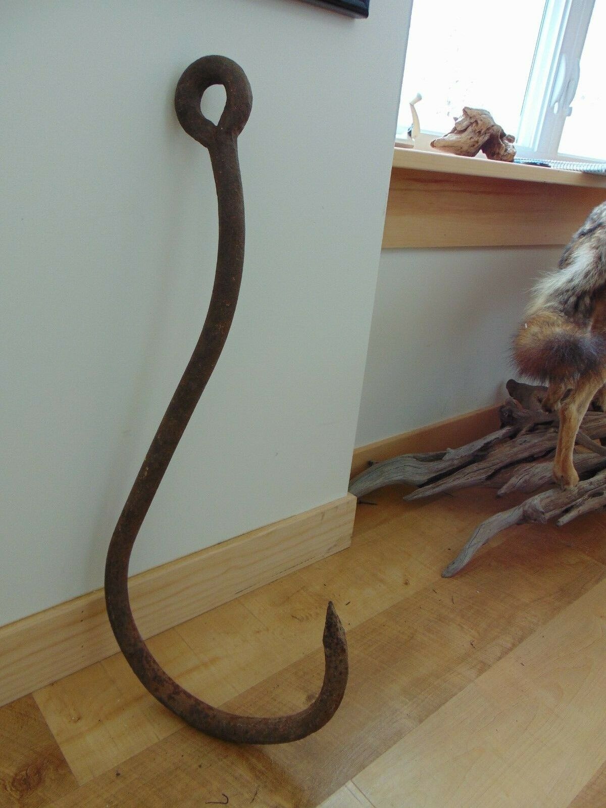 LG VINTAGE MEAT Hay wood fish HOOK Iron BEEF HOG meat Hanger Farm Dairy Barn 31"
