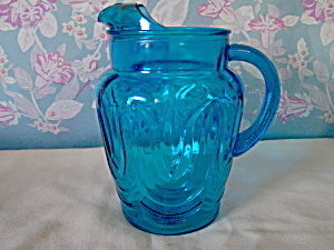 TULIP BLUE PITCHER BY ANCHOR-HOCKING