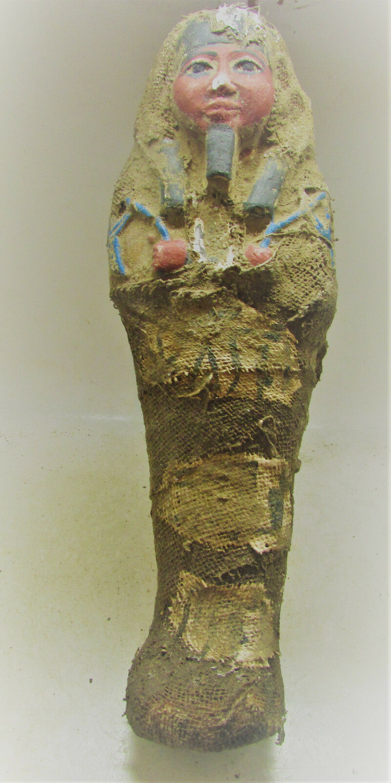 BEAUTIFUL ANCIENT EGYPTIAN GLAZED FAIENCE USHABTI SHABTI LINEN CLOTH WRAPPING
