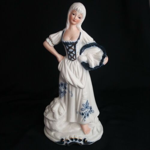 Vintage PORCELAIN FIGURINE FRENCH MAIDEN CERAMIC LADY STATUE 8.5" tall