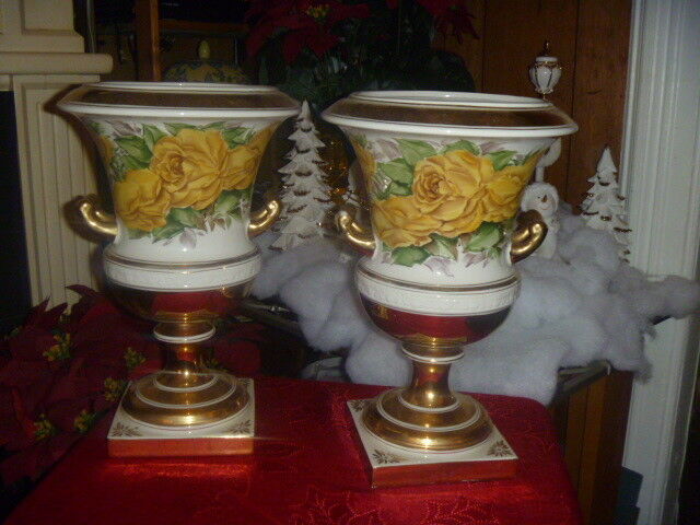 Title (ebay affiliate link): Large Pair Sevres Style Old Paris Porcelain Urns with large yellow roses