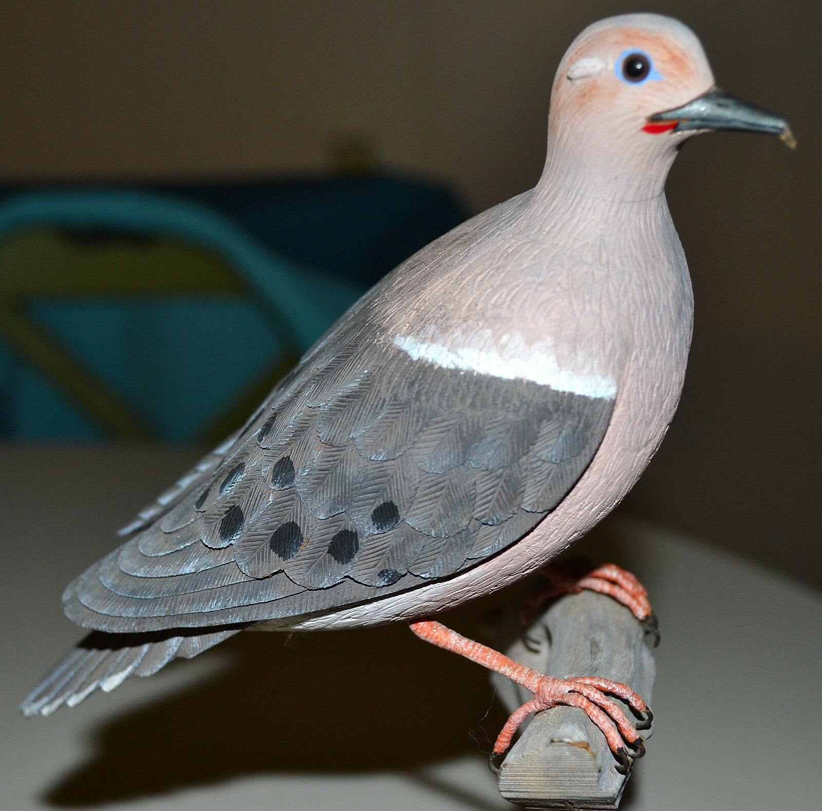 Title (ebay affiliate link): VINTAGE FOLK ART SIGNED HAND CARVED, HAND PAINTED WOOD MORNING DOVE FIGURE