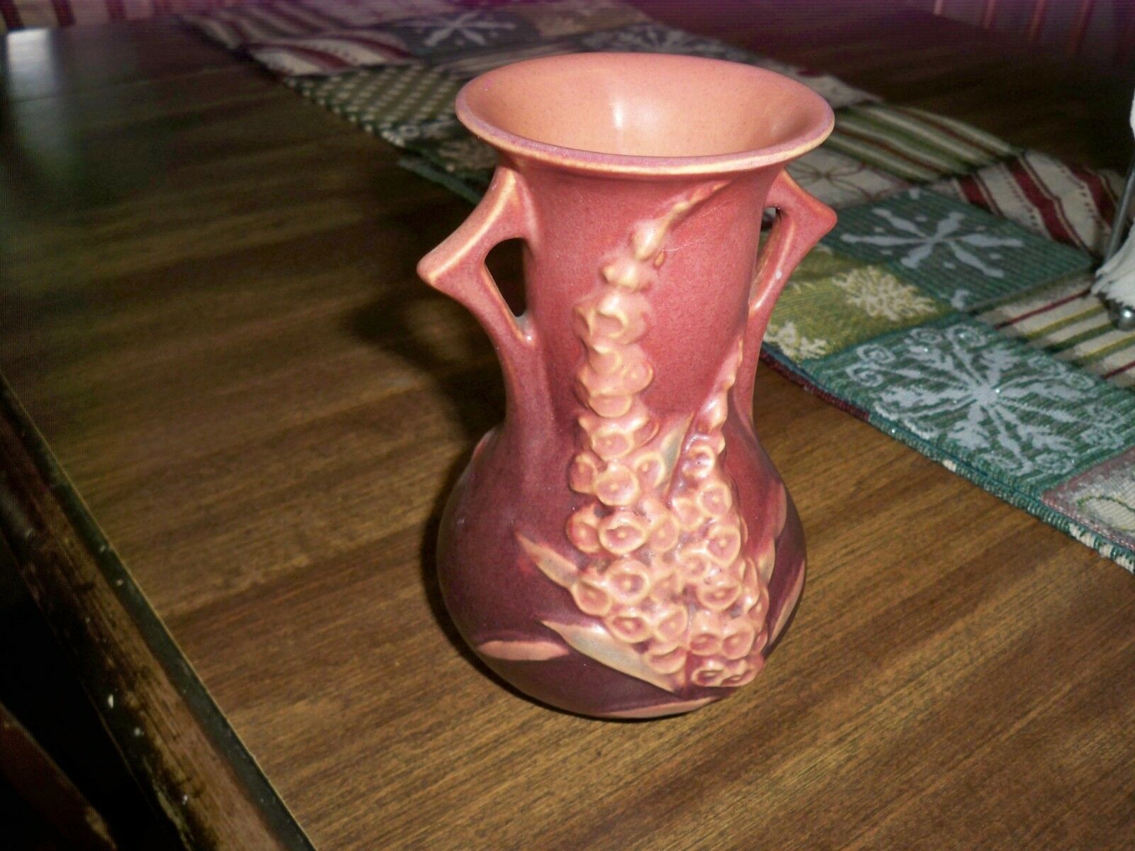Title (ebay affiliate link): Roseville USA Pottery vase 6 inch #46 wine and green color handles original ant