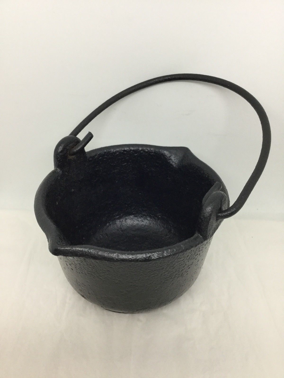 Title (ebay affiliate link): Vintage 7" Cast Iron Melting Pot Handle Kettle Cauldron Camping 4.5 LB~ L-0306-A