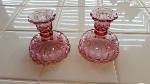 Title (ebay affiliate link): Red Depression Era Glass Candle Holder 4"W X 3.75"H