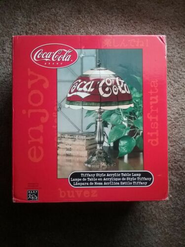 Title (ebay affiliate link): New in Box Coca~Cola Coke Vintage Style Tiffany Stained Glass Table Lamp