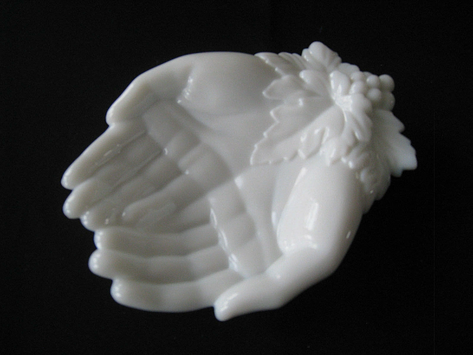 Title (ebay affiliate link): Vintage Milk Glass Hand Shaped Soap Dish Calling Card Westmoreland Grapes