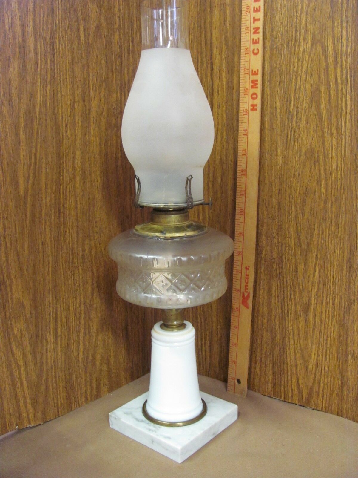 Boston Sandwich 1800''s EAPG Kerosene.Oil lamp Milk Glass and Marble base
