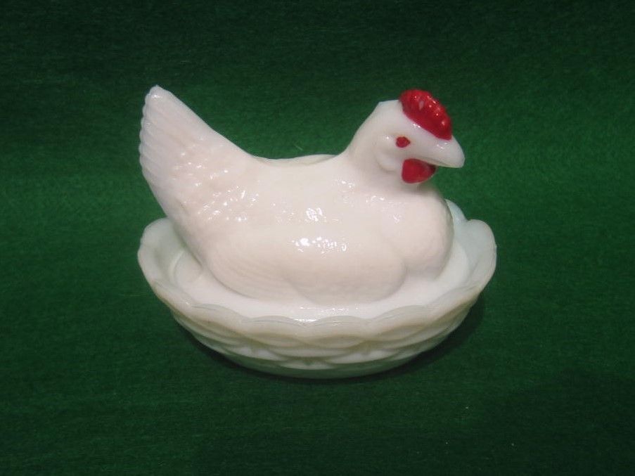 Westmoreland White Milk Glass Red Comb 3.5" Hen on a Nest