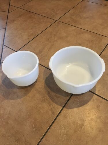 Vtg Sunbeam Mixmaster Mixer Orig Glassbake 9" & 6" Mixing Bowls White Milk Glass