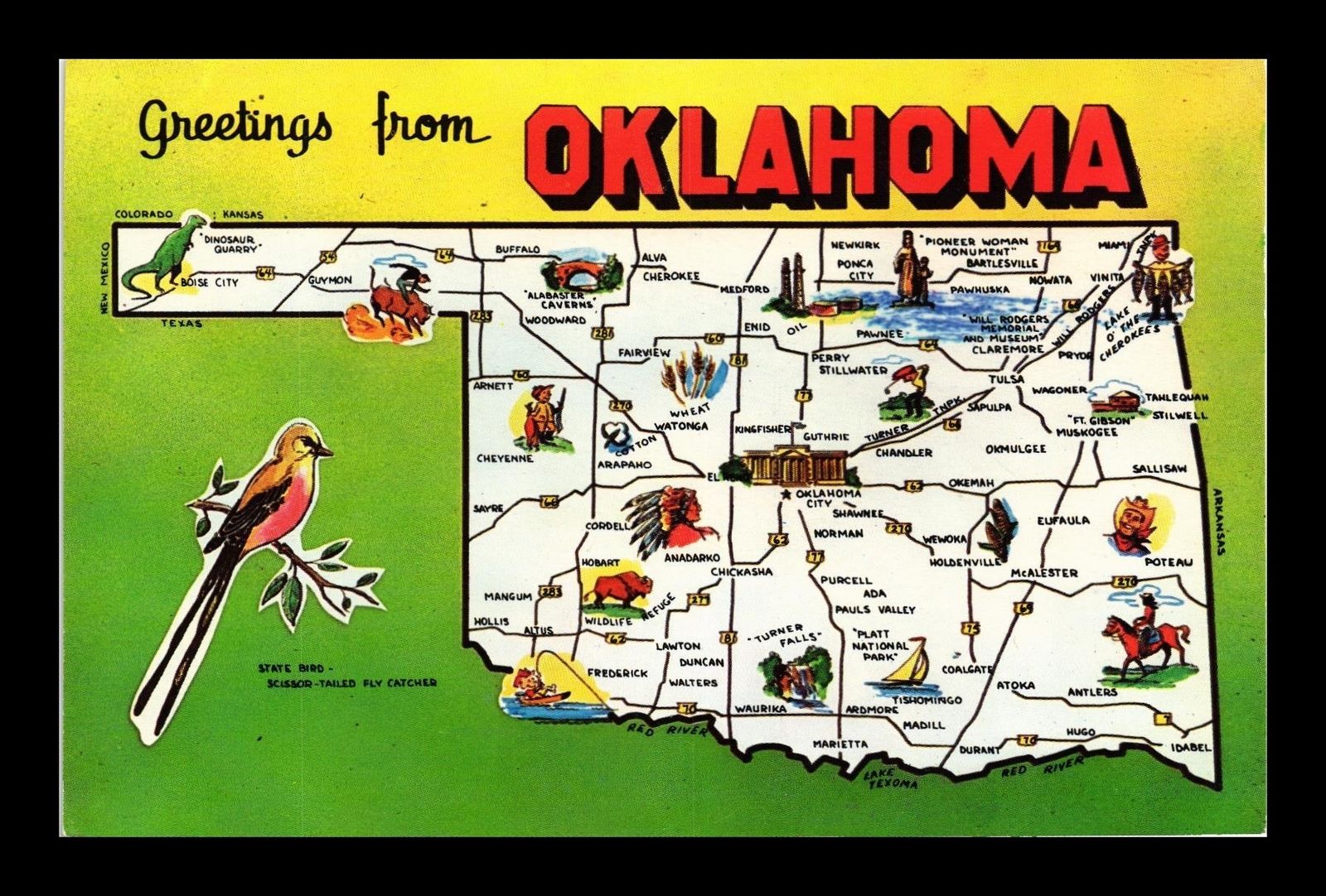 Title (ebay affiliate link): DR JIM STAMPS US GREETINGS FROM OKLAHOMA CHROME TOPICAL POSTCARD