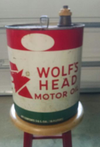 Large Vintage Wolf''s Head Motor Oil 5 Gallon Metal Can Gas Station Sign