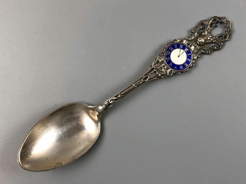 Antique BPOE Elks Lodge Enamel Sterling Silver Spoon Enamel Clock