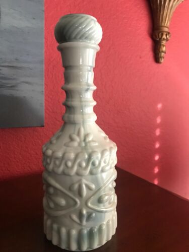 Title (ebay affiliate link): Blue Swirl Vintage Milk Glass Jim Beam Liquor Genie Bottle Decanter w/Stopper