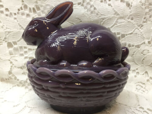 Title (ebay affiliate link): purple milk glass bunny rabbit on nest basket candy dish Easter opaque amethyst