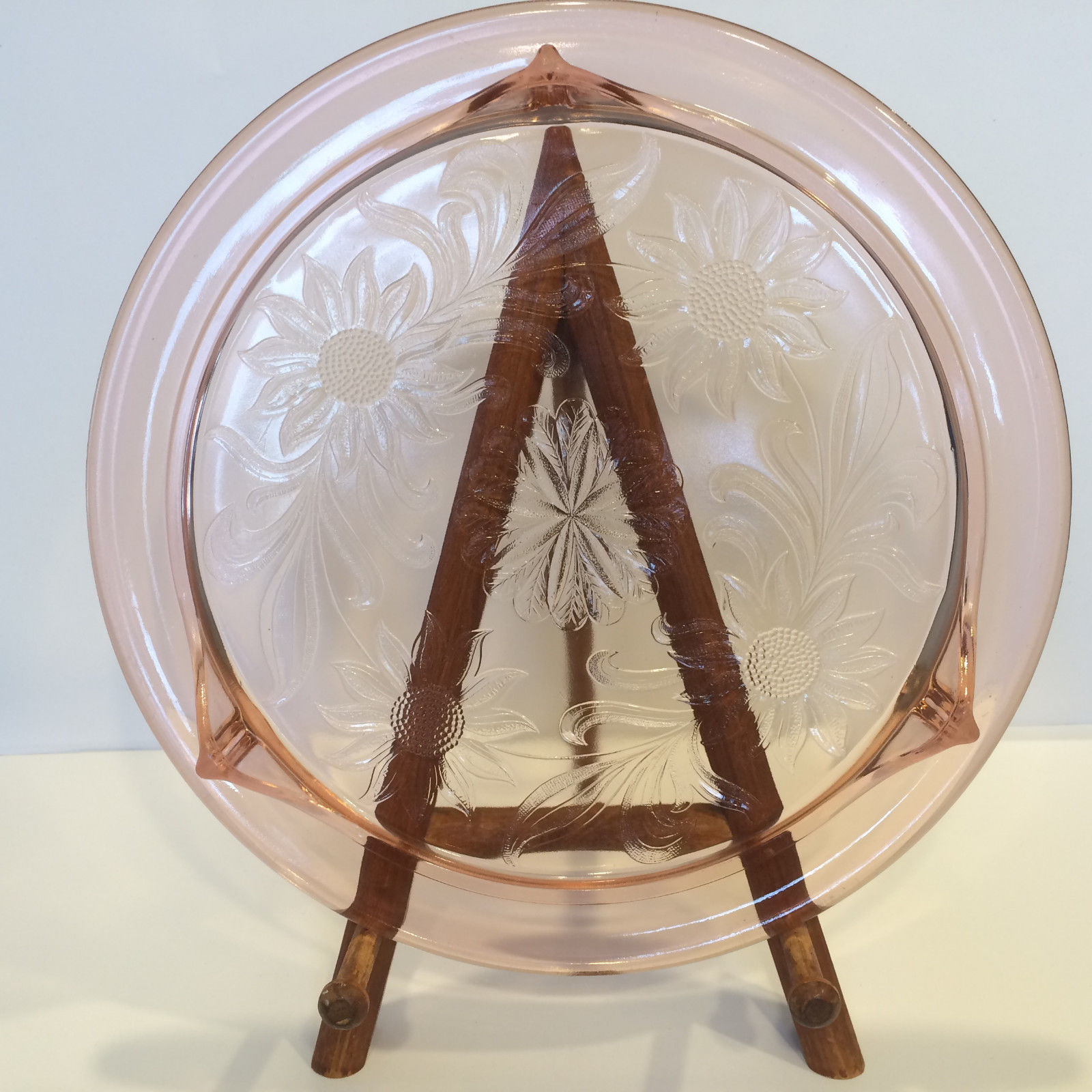 Title (ebay affiliate link): Depression Glass Footed Cake Platter Pink Jeanette Sunflower Pattern