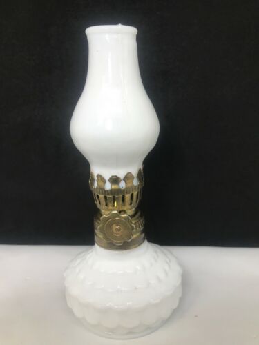 Title (ebay affiliate link): Antique Victorian Miniature Oil Lamp WMG White Milk Glass Chimney Tear Drape