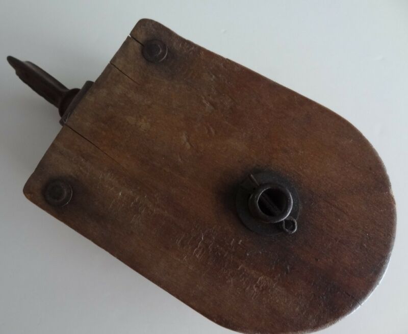 Title (ebay affiliate link): Antique Pulley Barn 5" Wood, Cast Iron