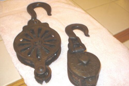 Title (ebay affiliate link): ANTIQUE CAST ION BARN PULLEYS X2 PULLEYS NOVELTY .DAGNAL & LOUD BOSTON **