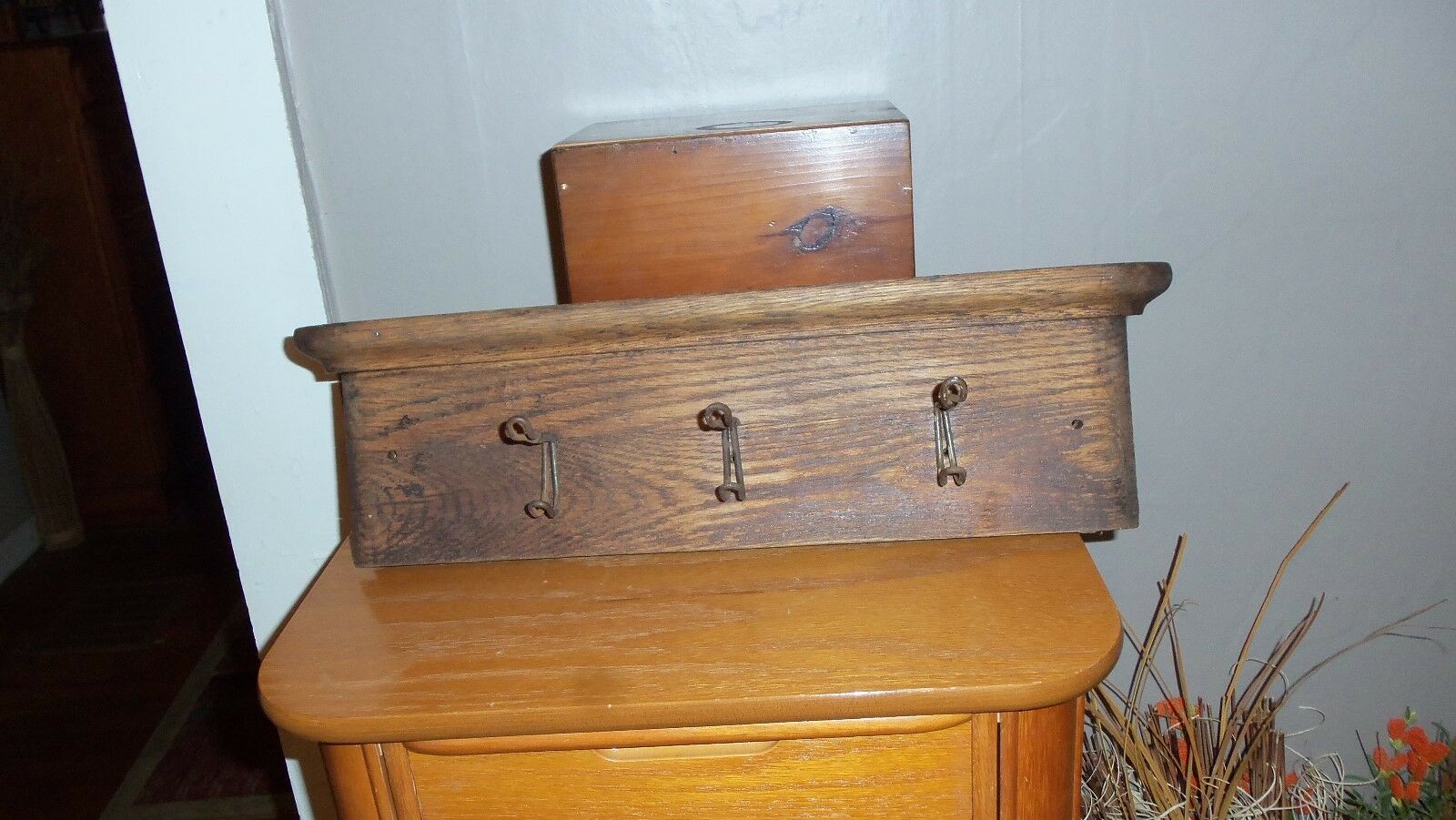 Title (ebay affiliate link): Vintage/Primitive Small Hanging Rack Tiger Oak/Maple Three Hooks