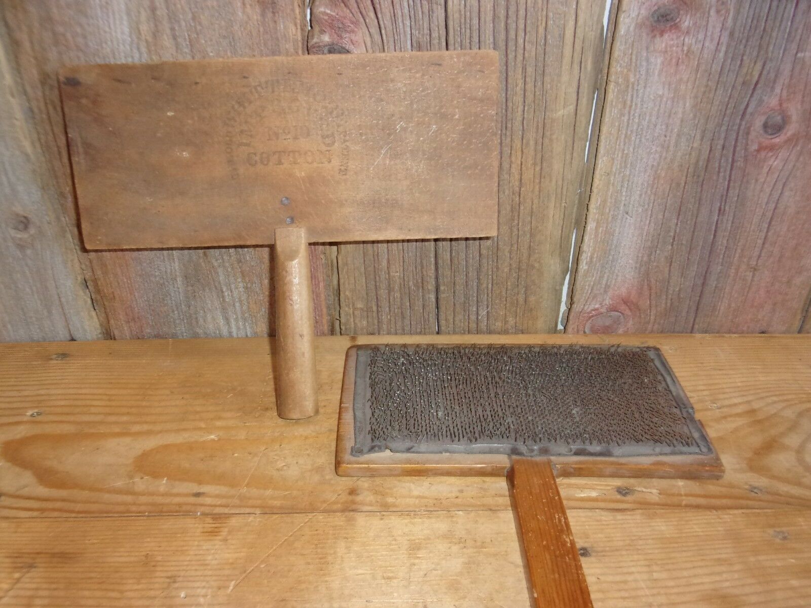Title (ebay affiliate link): VINTAGE OLD FARM ANIMALS PAIR OF SHEEP WOOL CARDING BRUSHES PADDLES COMBS