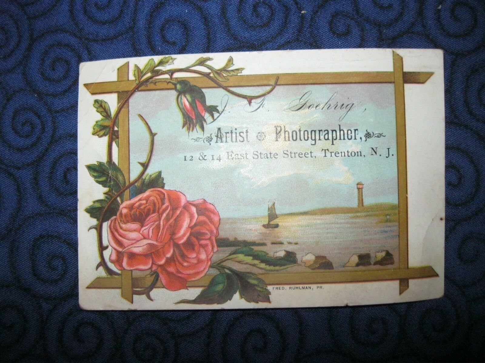 Title (ebay affiliate link): Victorian Trade Card J Goehrig Artist Photographer Trenton NJ Lighthouse 83