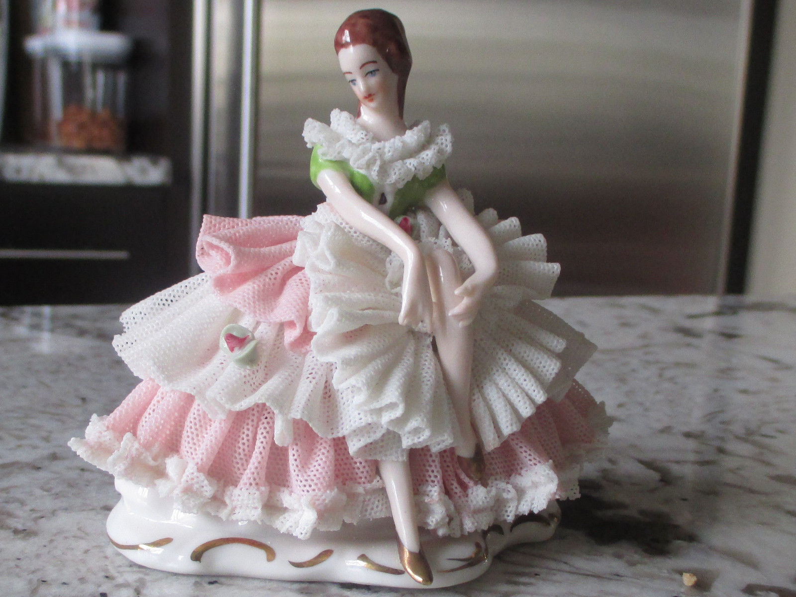 3.5" Dresden Lace Victorian Lady Figurine Germany Wilhelm Rittirsch