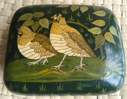 WOODEN LAQUERED BOX GREEN WITH BIRDS HAND MADE IN KASHMIR INDIA