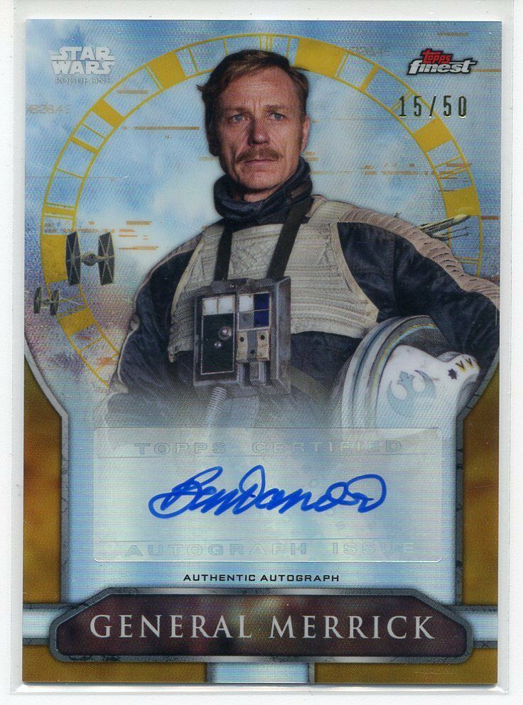 Title (ebay affiliate link): General Merrick 2018 Topps Finest Star Wars Rogue One Story Auto Gold #15/50