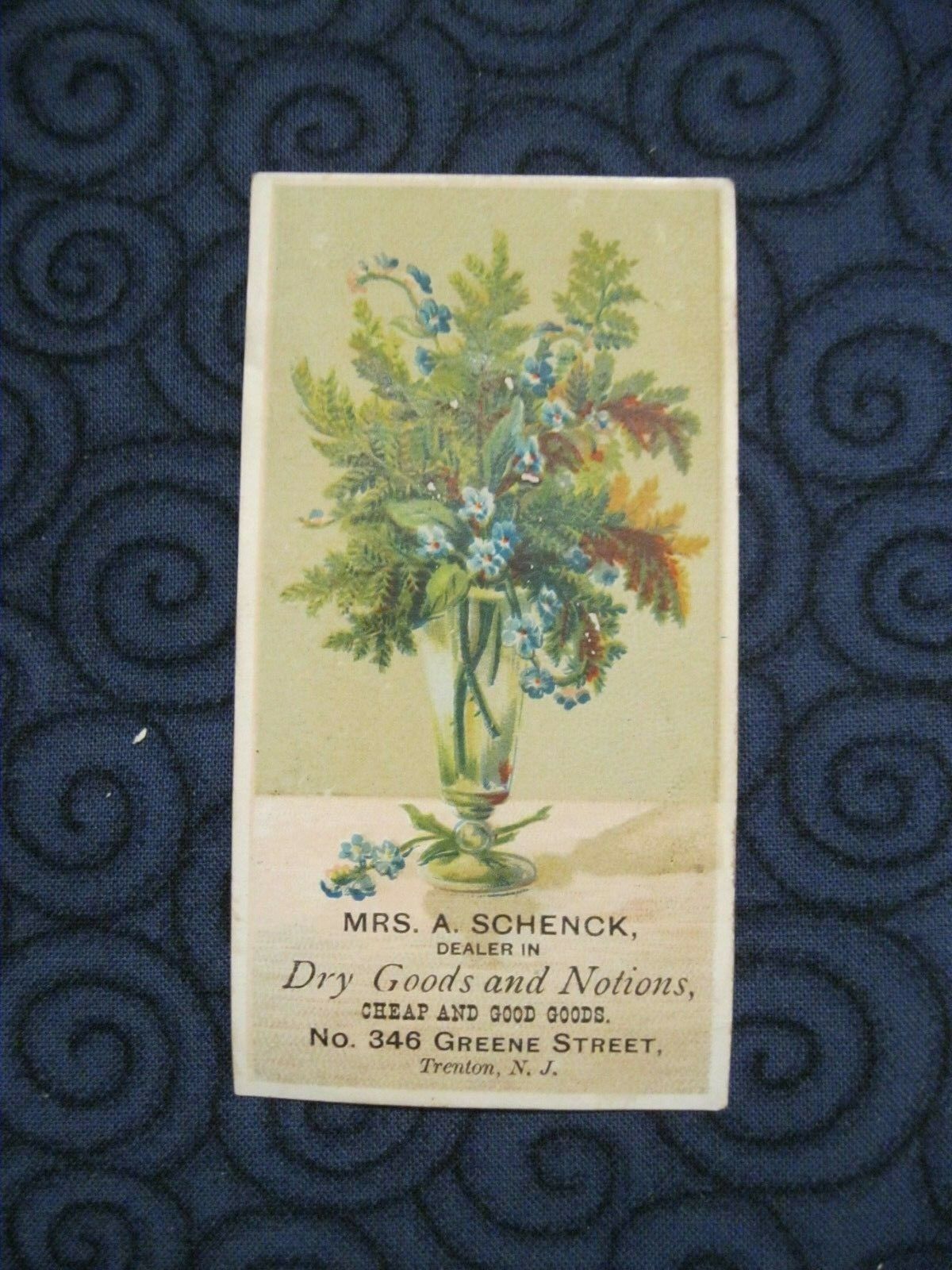 Title (ebay affiliate link): Victorian Trade Card 1800''s Mrs. A. Schenck Trenton NJ LOVELY Vase Scraps 83