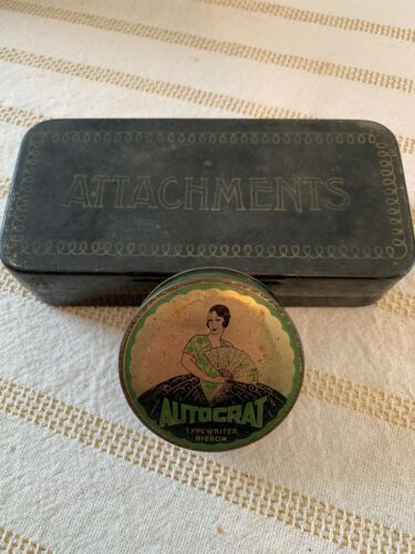 Title (ebay affiliate link): Vintage Lot Of 2 Singer Sewing Attachments/Autocrat Typewriter Ribbon Tins NR