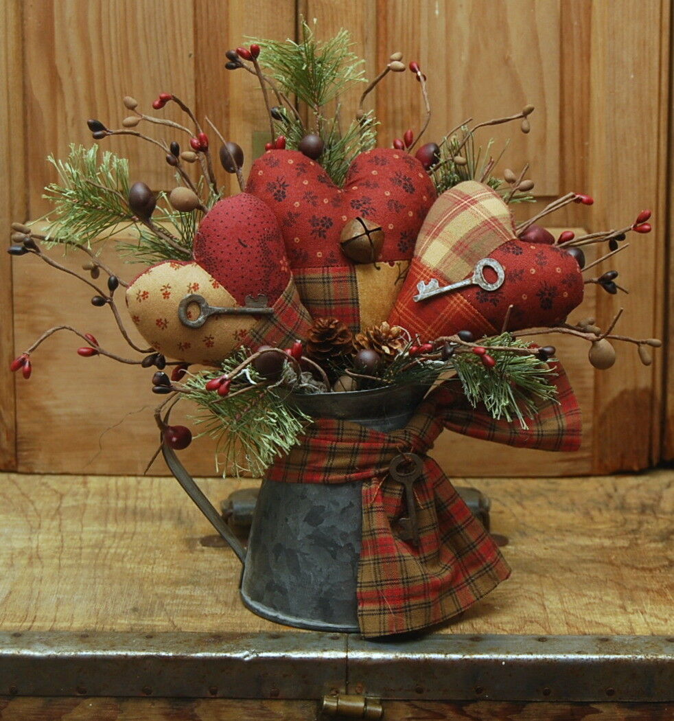 Title (ebay affiliate link): HANDMADE PRIMITIVE VALENTINES DAY SMALL PITCHER EVERYDAY PATCHWORK HEARTS