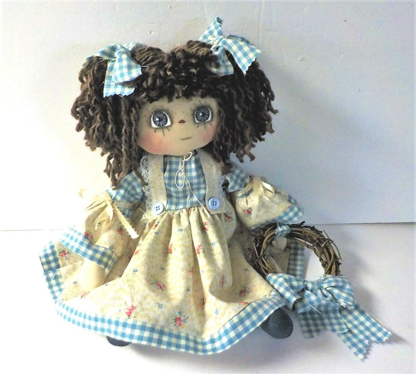 Primitive Handmade Raggedy Ann Doll Homespun Calico Grapevine Wreath "Marlene"